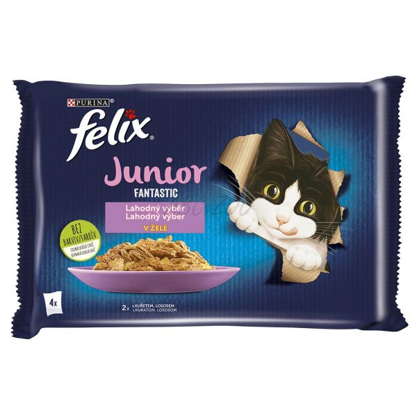 FELIX® Fantastic Junior to seria karm, którym nie można się oprzeć, które wyglądają, pachną i smakują tak smacznie, jak jedzenie, które sam ugotujesz! Każda receptura, wykonana jest z wysokiej jakości składników, zawiera delikatne kawałki galaretki, aby Twój kociak naprawdę mógł wgryźć się w smaczne jedzenie! Kocięta wymagają specjalnego żywienia w pierwszym roku życia. Dlatego każda receptura jest specjalnie opracowana, aby pokryć w 100% codzienne potrzeby Twojego kociaka. Są pełne białek i witamin, które pomagają mieć silne mięśnie, kości i zęby u szczęśliwego i psotnego, dorosłego kota! Zobacz instrukcje karmienia. To nie wszystko! FELIX Fantastic Junior jest dostępny w wielu pysznych recepturach w soczystej galarecie, aby zaspokoić zamiłowanie Twojego kociaka do różnorodności każdego dnia. Naprawdę smakują tak dobrze, jak wyglądają! FELIX jest po prostu nie do odparcia!W 100% kompletne i wyważoneBiałkaWitaminyBez dodatku sztucznych konserwantów