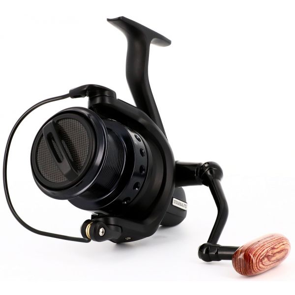 Kołowrotek o dużej pojemności z przednim hamulcem przeznaczony do łowienia karpi. Jest niezawodny, trwały i poradzi sobie w każdych warunkach. Wodoodporny, lekki korpus wykonany z czarnego kompozytu grafitowego o eleganckim, matowym wyglądzie. W zestawie: wysoka aluminiowa szpula do dalekich rzutów, komputerowo wyważony rotor, antyrewers, duży dzwonek zapobiegający skręcaniu, precyzyjny gładki hamulec mikrometryczny, nawijanie krzyżowe S, system powolnej podwójnej oscylacji, solidna wytrzymała rękojeść z drewnianym zakończeniem, wzmocniona płetwa i łożyska ze stali nierdzewnej.