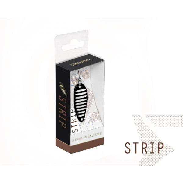 Delphin STRIP to seria mikro wahadłówek przeznaczonych do połowu pstrągów. Ich korpus wykonany jest ze stopu cynku. Wyposażone są w wysokiej jakości pojedynczy haczyk z serii BOMB! Posiadają również HardLure i FASTLOCK MICRO SNAP, aby nie stracić żadnej ryby. Przynęty te są również bardzo skuteczne podczas łowienia małych ryb drapieżnych na jeziorach lub rzekach. Są one bardzo kuszące i atrakcyjne dla drapieżników, co widać na pierwszy rzut oka. Przynęty STRIP mają paski w różnych kolorach, co doskonale imituje żywą przynętę.