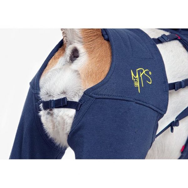 Aby przymocować rękaw na tylnych nogach, wymagana jest odzież pooperacyjna MPS na klatkę piersiową psa 4 + 1. Kamizelka nie jest częścią zestawu.