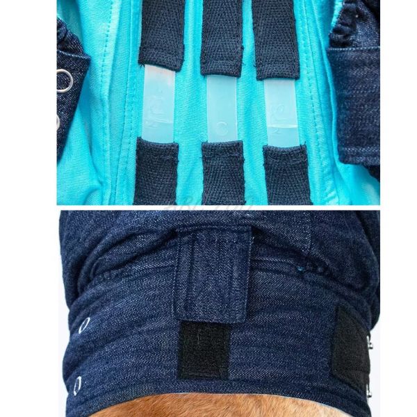 Ochraniacz posiada dwie specjalnie zaprojektowane kieszenie boczne po wewnętrznej stronie uszu. W nich można umieścić miękką poduszkę dla dodatkowej ochrony głowy. (Tylko 1 taka poduszka jest wliczona w cenę). Uszy psa można również włożyć do tych kieszeni, aby chronić sierść przed bieżącą krwią lub maściami. Jeśli konieczne jest schłodzenie jednego lub obu uszu (po konsultacji z weterynarzem), kieszonki te mogą być również używane do przechowywania wkładek chłodzących.