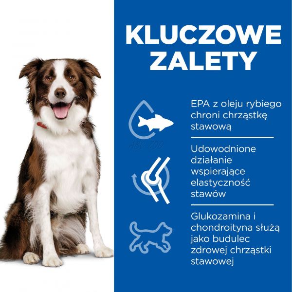Hill's Science Plan Healthy Mobility karma dla średniej wielkości psów z kurczakiem ma specjalny skład wspierający zdrowie stawów dla aktywnego życia.Kluczowe korzyści