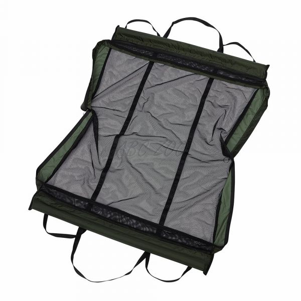 Całość została tu zaprojektowana z myślą o bezpieczeństwie ryby. Korzystając z niego nie masz konieczności przenoszenia ryb ze zwykłego worka na matę do ważenia, gdyż worek ten posiada centralnie umieszczone uchwyty do zawieszenia na wadze. Zastosowano tu mocne suwaki z pierścieniami blokującymi, do których łatwo można przymocować sznurek od podpórki (nie dołączony). Ciemna, przyjazna rybom siatka redukuje ilość przenikającego przez nią światła i maksymalizuje wymianę wody, co zapewnia doskonałe warunki dla przetrzymywanej ryby. Możesz mieć pewność, że Twoje trofeum pozostaną bezpieczne i będzie miało wygodne, kiedy Ty będziesz szykował aparat i wagę.