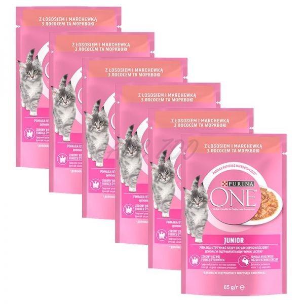 PURINA ONE JUNIOR mini filety z łososiem i marchewką w sosie 6 x 85 g