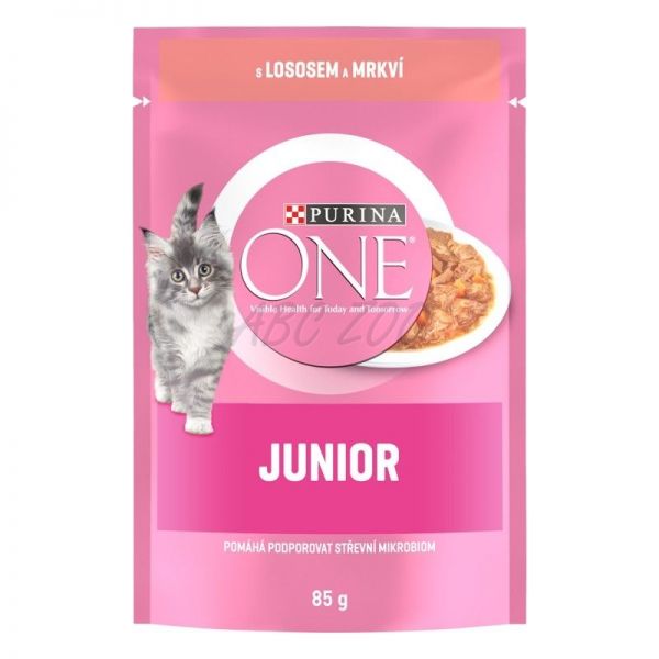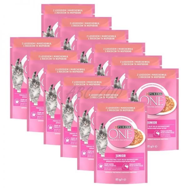 PURINA ONE JUNIOR mini filety z łososiem i marchewką w sosie 12 x 85 g