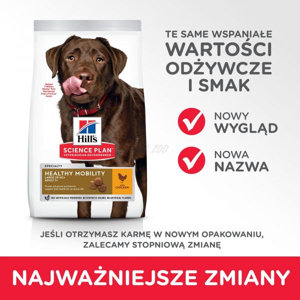 Hill's Science Plan Healthy Mobility dla dorosłych psów dużych ras, z kurczakiem. Szczegółowy opis