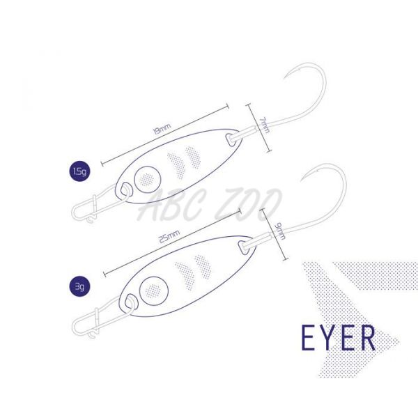 Delphin EYER to seria mikro wahadłówek przeznaczonych do połowu pstrągów. Ich korpus wykonany jest ze stopu cynku. Wyposażone są w wysokiej jakości pojedynczy haczyk z serii BOMB! Posiadają również HardLure i FASTLOCK MICRO SNAP, aby nie stracić żadnej ryby. Przynęty te są również bardzo skuteczne podczas łowienia małych ryb drapieżnych na jeziorach lub rzekach. Są one bardzo kuszące i atrakcyjne dla drapieżników, co widać na pierwszy rzut oka. Przynęty EYER są wyposażone w duże sztuczne oko, które doskonale imituje żywą przynętę.