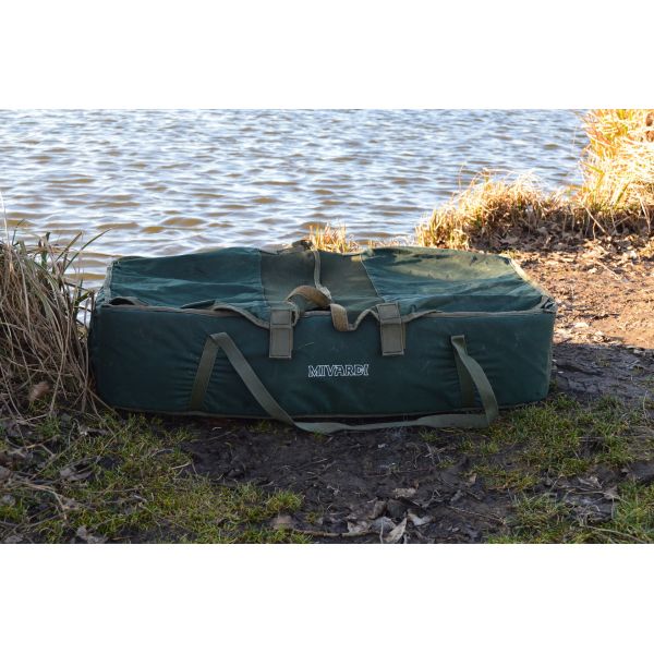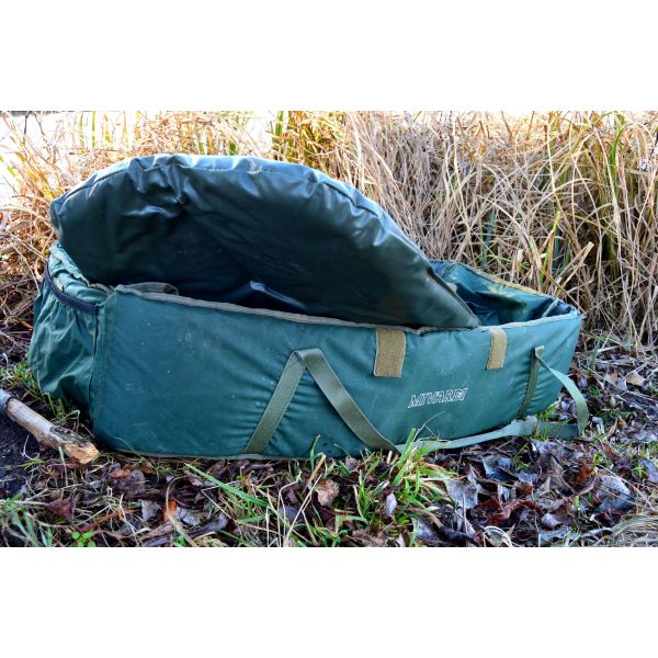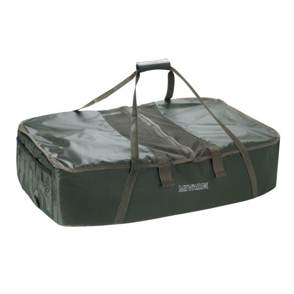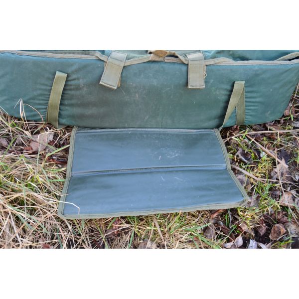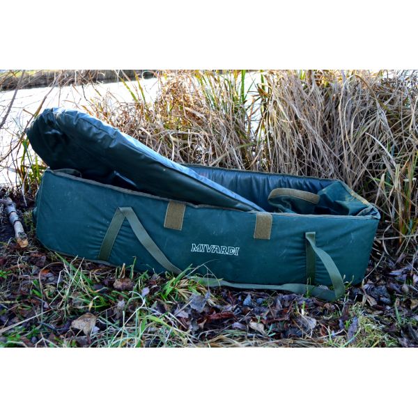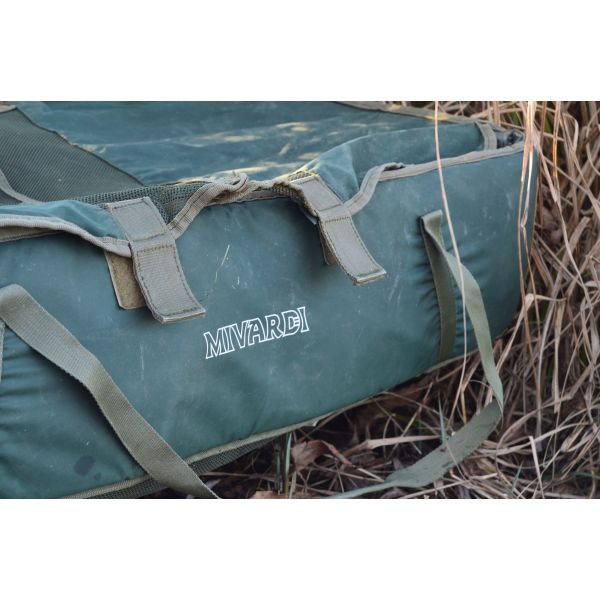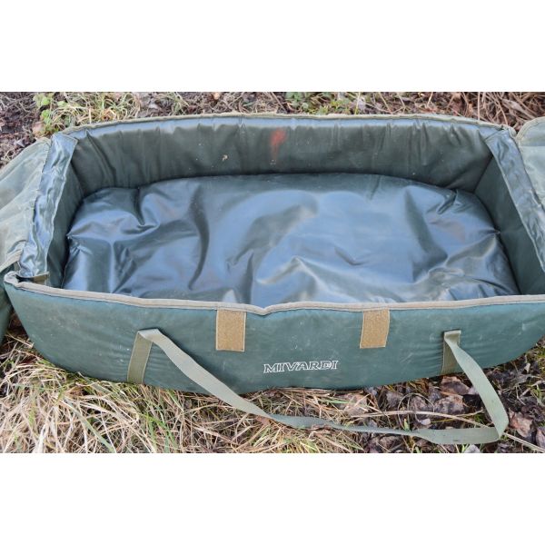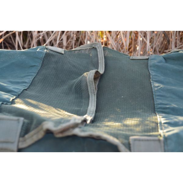 Przestronna i dobrze wyściełana mata karpiowa z całkowicie przyjaznym dla ryb materiałem wewnętrznym. Mata jest wyposażona w klęcznik i siatkowe wieko, które można częściowo lub całkowicie zamknąć za pomocą rzepów.