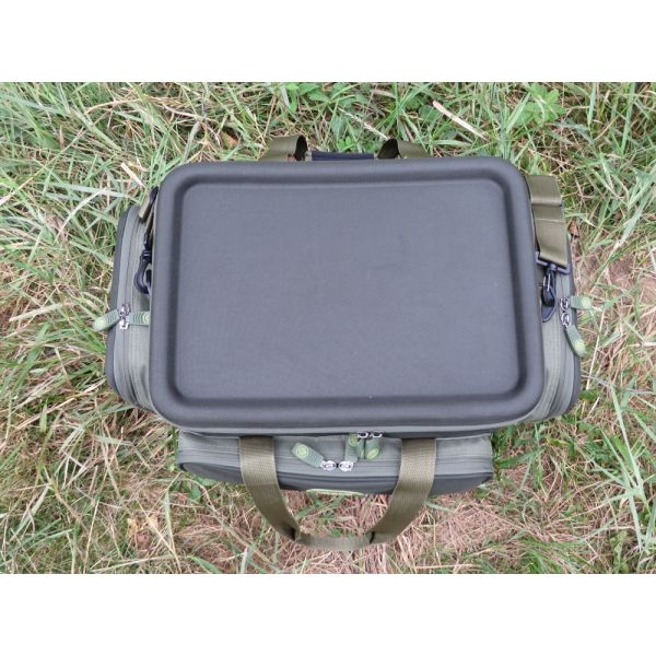 Luksusowa obszerna torba dla karpiarzy z wieloma niezbędnymi akcesoriami w podstawowym wyposażeniu. Zastosowany materiał B-POL600D gwarantuje długą żywotność, łatwe czyszczenie i wodoodporność. Stała pokrywa o specjalnym kształcie służy jako stolik na akcesoria. Nogi stołka są wkomponowane w rogi torby. Grubo wyściełany pasek zapewnia wygodne noszenie. W cenie torby znajduje się również magazynek z podwójną prowadnicą, duże pudełko systemowe oraz trzy małe pudełka na akcesoria. Wszystko z nowej gamy akcesoriów karpiowych Mivardi. Kolejnym dodatkiem do torby jest osiem wysokiej jakości buteleczek na dipy ze szczelnie zamykaną nakrętką.