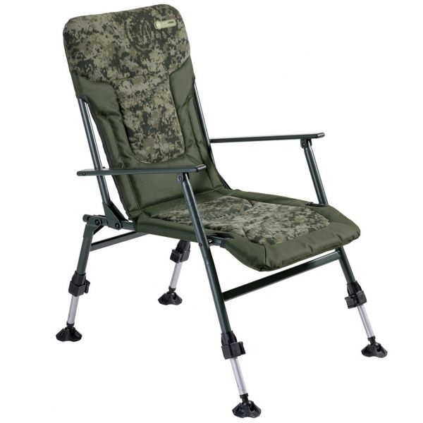 Kompaktowe, ale niezwykle stabilne i solidne krzesło z czterema teleskopowymi nogami i solidnymi podłokietnikami. Minimalne wymiary transportowe predestynują go na krótsze spacery i łowienie w trudno dostępnych miejscach. Nie zmniejszają one jednak w żaden sposób jego ogólnej wytrzymałości ani nośności. Dzięki specjalnie ukształtowanej ramie siedziska, fotel ten oferuje nadspodziewanie wygodne siedzenie. Samorozsuwane teleskopowe nogi są wyposażone w wahadłowe nóżki zapobiegające zapadaniu się.