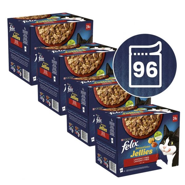 Każda karma FELIX Sensations Jellies zawiera kruche kawałki, którą zadowolą kota, podawane w różnych sosach smakowych dla niezwykłego smaku i kuszącego aromatu. Jednocześnie są źródłem kwasów tłuszczowych omega-6 i mają odpowiednią kombinację witamin, aby Twój kot był pełen energii i gotowy na psoty! Są pełne smakołyków i zaspokajają 100% codziennych potrzeb Twojego kota, gdy są podawane zgodnie z instrukcjami karmienia. To nie wszystko! FELIX Sensations Jellies dostępne są w szerokiej gamie kombinacji smaków w nieodpartych sosach! Tak więc, jeśli masz szczęście mieć tak rewelacyjnego kota jak FELIX, zadowalaj jej miłość do różnorodności każdego dnia z Felix Sensations Jellies! FELIX jest po prostu nie do odparcia!