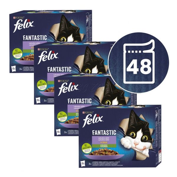 Każdy przepis, wykonany z wysokiej jakości składników, zawiera kruche kawałki w galarecie, dzięki czemu Twój kot może wgryźć się w smaczną karmę! Jednocześnie są źródłem kwasów tłuszczowych omega-6 i mają odpowiednią kombinację witamin, aby Twój kot był pełen energii i gotowy na psoty! Są pełne smakołyków i zaspokajają 100% codziennych potrzeb Twojego kota, gdy są podawane zgodnie z instrukcjami karmienia. To nie wszystko! FELIX Fantastic jest dostępny w wielu pysznych przepisach w soczystej galarecie, aby zaspokoić miłość Twojego kota do różnorodności każdego dnia. Naprawdę smakują tak dobrze, jak wyglądają! FELIX jest po prostu nie do odparcia!
