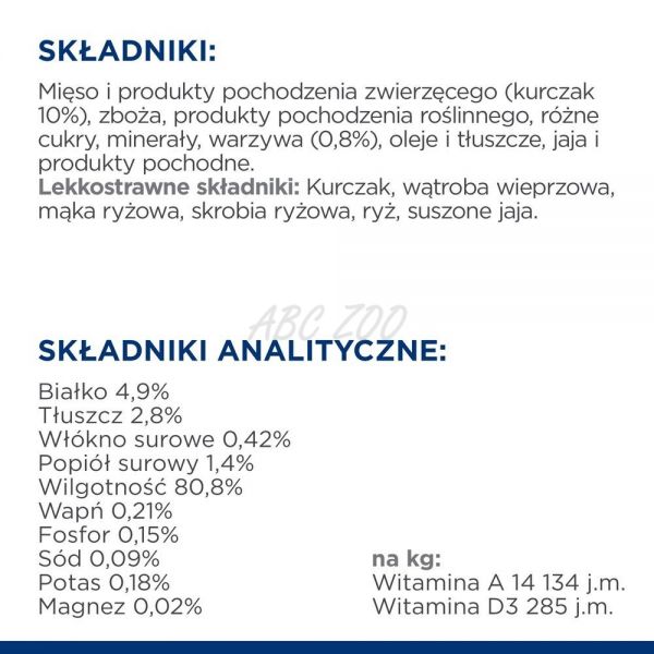 100% gwarancji zadowolenia Hill's - jeśli z jakiegokolwiek powodu nie będziesz zadowolony, zwróć niewykorzystaną ilość karmy w miejscu zakupu, a otrzymasz zwrot pełnej ceny lub wymienimy karmę na inną.