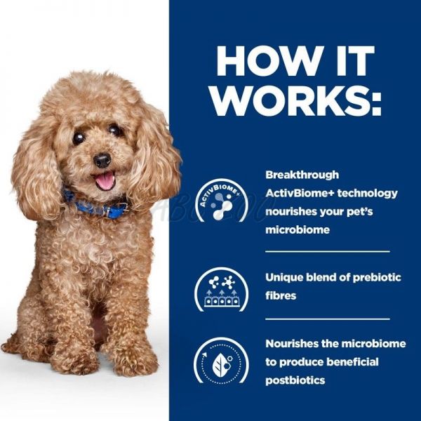 Hill’s PRESCRIPTION DIET Gastrointestinal Biome Mini sucha karma dla psów z kurczakiem. Szczegółowy opis