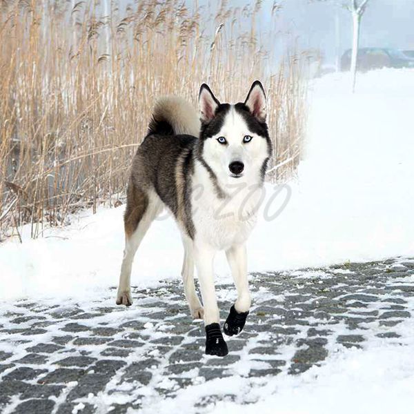 Buciki dla psów zapinane na rzepę, nieprzemakalne w czarnym kolorze. Szczegółowy opis