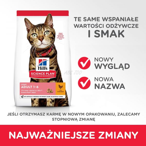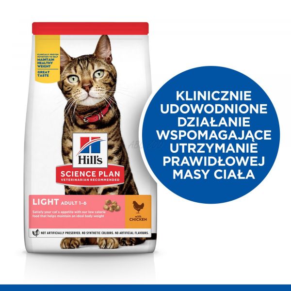 Hill's Science Plan Light karma dla dorosłych kotów, z kurczakiem.