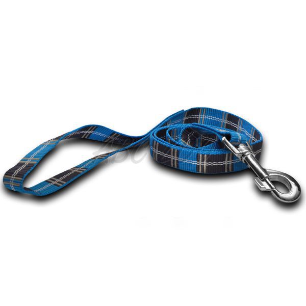 Nylonowa smycz dla psa - niebieska kratka 2 x 120 cm