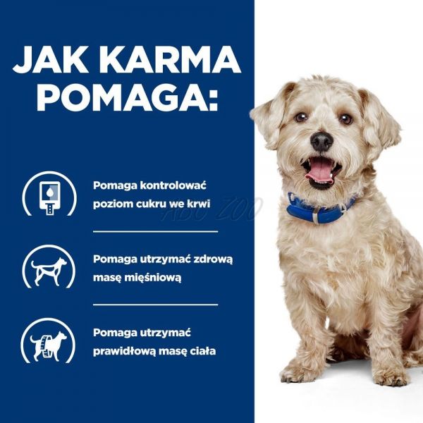 Karma dla psów Hill's PRESCRIPTION DIET w/d ma skład specjalnie opracowany do kontroli glukozy w celu wspomagania leczenia cukrzycy Twojego psa.
