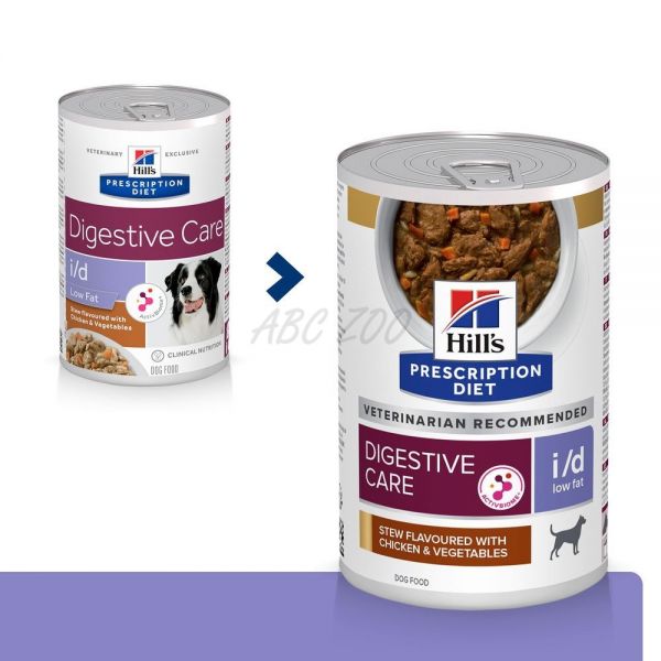 Gulasz dla psów Hill's PRESCRIPTION DIET i/d Low Fat o smaku kurczaka i warzyw to wysoce strawna i kompletna dietetyczna karma przeznaczona do ograniczania objawów zaburzeń wchłaniania jelitowego oraz do kompensacji skutków złego trawienia i zewnątrzwydzielniczej niewydolności trzustki u dorosłych psów. Ta dietetyczna karma zawiera zwiększone ilości sodu i potasu oraz wysoce strawne składniki.