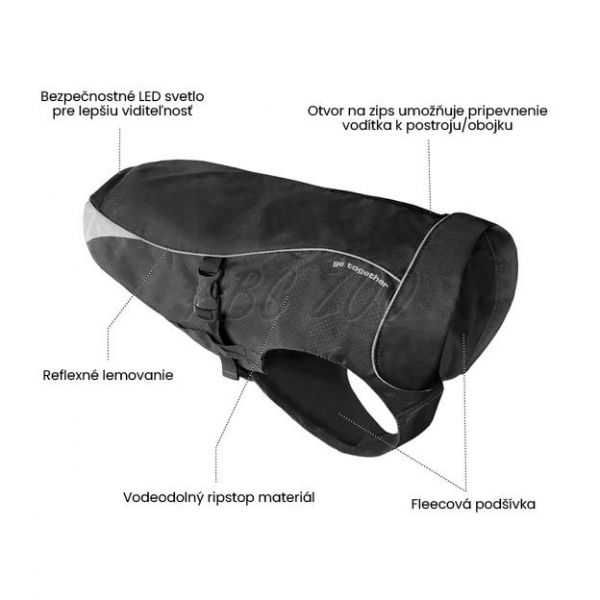 Dzięki zastosowaniu wysokiej jakości i trwałych materiałów, bez problemu radzi sobie z mokrą i zimną pogodą. Otwór na zamek błyskawiczny umożliwia przypięcie smyczy do obroży lub szelek, a przemyślany projekt uzupełniają tylne klamry, które umożliwiają dokładne dopasowanie i dostosowanie do potrzeb. W ciemności ta kurtka będzie pięknie chronić Państwa psa dzięki dodatkowemu wykończeniu odblaskowemu i wbudowanemu migającemu paskowi LED.