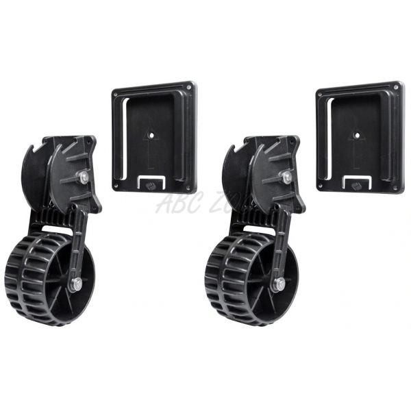 Transportowe kółka ułatwiające manipulację z łodzią. Do tylnej burty łodzi montuje się płytki, do których od spodu wsuwane są kółka. Kółka można podczas pływania złożyć lub wysunąć z płytki. Zestaw zawiera dwie płytki i dwa kółka.