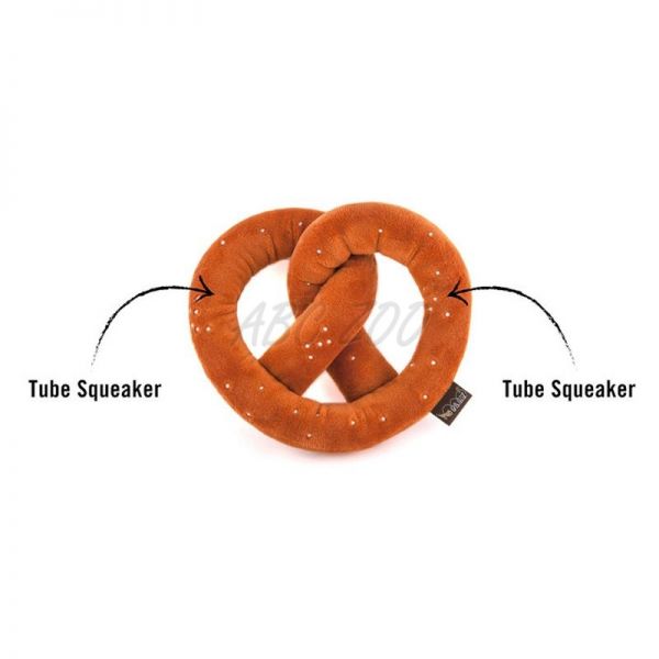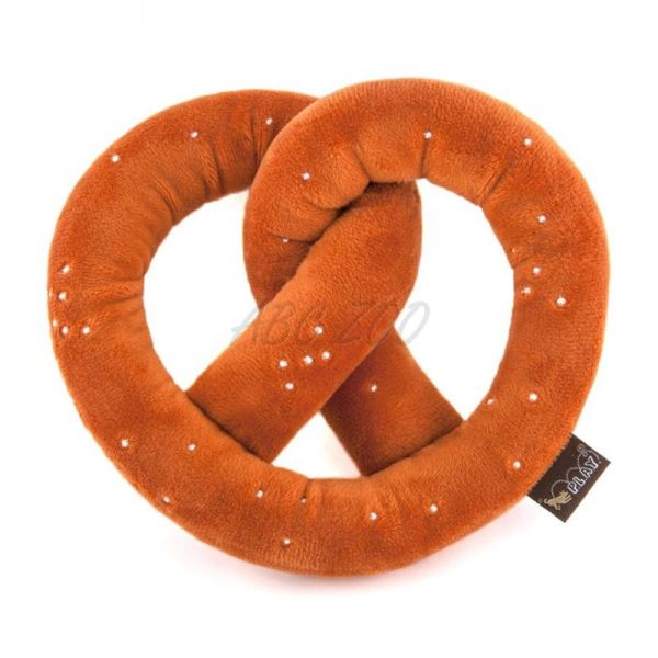Funkcjonalna zabawka pluszowa dla psów w kształcie precla. Szczegółowy opis