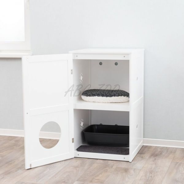 Nowoczesny domek, w którym można ukryć kocią toaletę. Szczegółowy opis