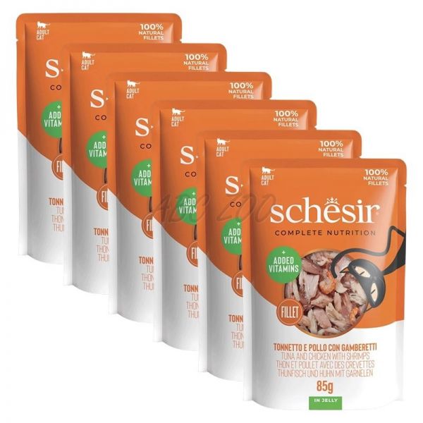 Schesir cat filety z tuńczyka i kurczaka z krewetkami 6 x 85 g