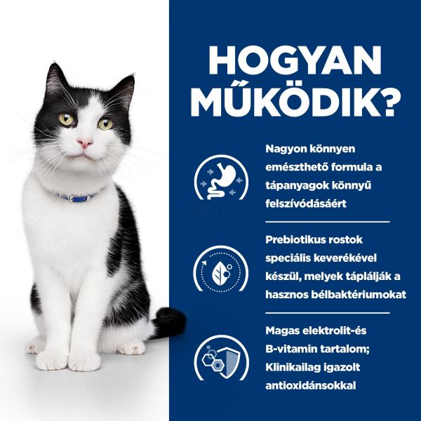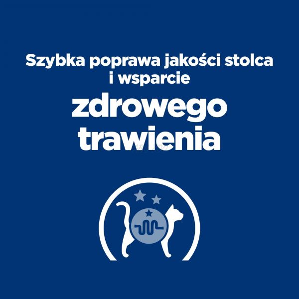 Hill's Prescription Diet i/d karma dla kotów to wysoko strawna dieta o specjalnej formule, która pomaga ograniczyć problemy trawienne i zapewnia łatwe przyswajanie składników odżywczych. Jest wzbogacona elektrolitami i witaminami z grupy B, które pomagają zastąpić utracone składniki odżywcze. Zawiera chronioną patentem technologię ActivBiome+, czyli specjalną mieszankę prebiotyków, która, jak udowodniono w badaniach klinicznych, szybko odżywia mikrobiom jelitowy, sprzyjając optymalnej jakości stolca i zdrowemu trawieniu. Wzbogacony o kwasy Omega-3 i Omega-6 oraz przeciwutleniacze o klinicznie potwierdzonym działaniu, aby wspierać zdrowy układ odpornościowy.