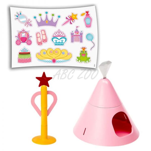 Dostarczane akcesoria: 1 miseczka na pokarm, 1 butelka na wodę, 1 mały domek, 1 koło, 1 dekoracja w kształcie magicznej różdżki