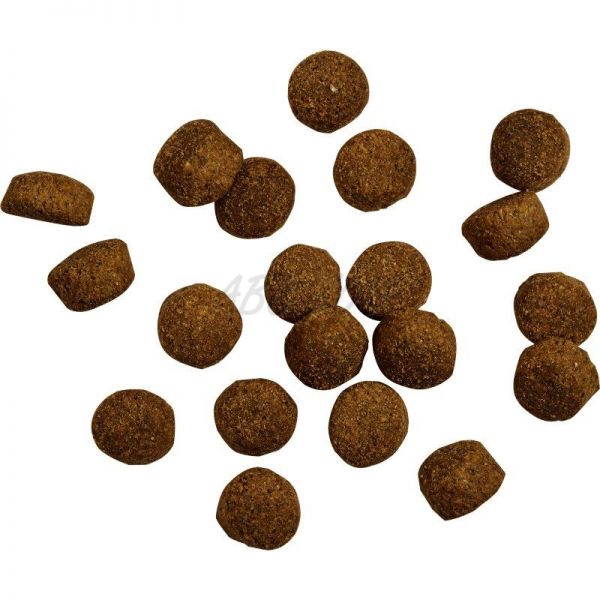 Skład: białko kurczaka, suszone (16,5%); kukurydza; mączka z owsa pastewnego; mączka z ryb morskich (8%); tłuszcz z kurczaka; mąka grochowa; mączka kukurydziana; śruta kukurydziana; mączka z fasoli (Vicia faba); suszone wytłoki buraczane, bez cukru; żelatyna, hydrolizowana (2,5%); karob rozdrobniony, suszony (2,5%); Drożdże piwne, inaktywowane, suszone (2,5 %); Olej z łososia (2 %); Fosforan wapnia; Siemię lniane (1,1 %); Wątroba drobiowa, hydrolizowana; Chlorek sodu; Chlorek potasu; Suszone zioła (liście pokrzywy, korzeń goryczki, szałwia, rumianek, koper włoski, kminek, jemioła, krwawnik, liście jeżyny) (0,2 %); Yucca schidigera