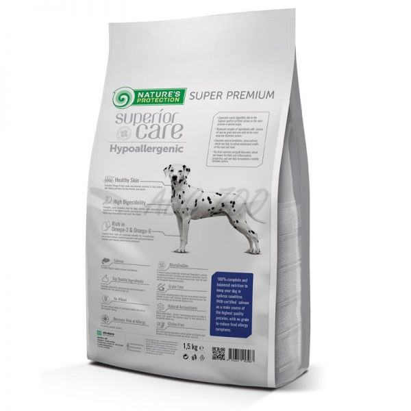 Natures Protection Superior care dog GF adult Hypoallergenic salmon all breed 1,5 kg