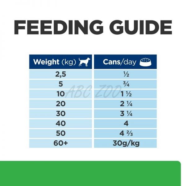 Karm zwierzę wyłącznie zalecaną karmą PRESCRIPTION DIET. Najpierw Poproś lekarza weterynarii o przekazanie szczegółowej instrukcji karmienia swojego zwierzęcia. Kompletna instrukcja podawania znajduje się na opakowaniu. Zalecane dawki dzienne są wyłącznie poglądowe i mogą stanowić punkt odniesienia. Jeśli masz wątpliwości, zapytaj lekarza weterynarii. Świeża woda musi być stale dostępna.