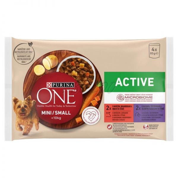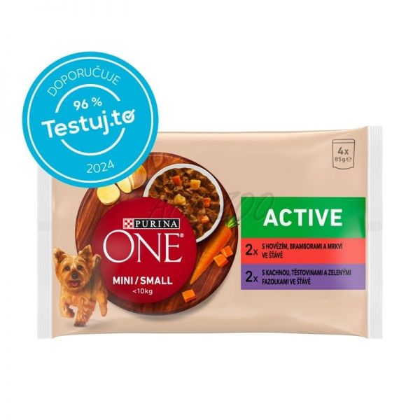 PURINA ONE MINI Dog Active Wołowina i kaczka w soku 4 x 85 g