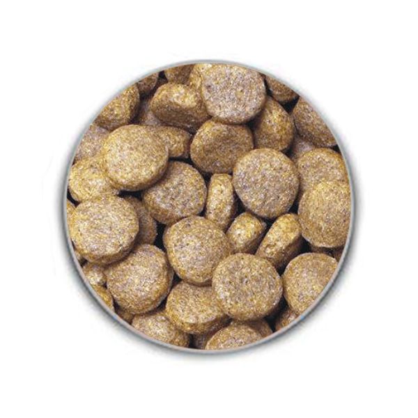 Skład:mączka z mięsa drobiowego 26%; kukurydza; jęczmież, tłuszcz drobiowy; olej roślinny (palmowy, kokosowy); mączka śledziowa 5%; ryż; drożdże piwne suszone 20,5%; suszony chleb świętojański; wątróbka drobiowa hydrolizowana; chlorek sodu; chlorek potasu