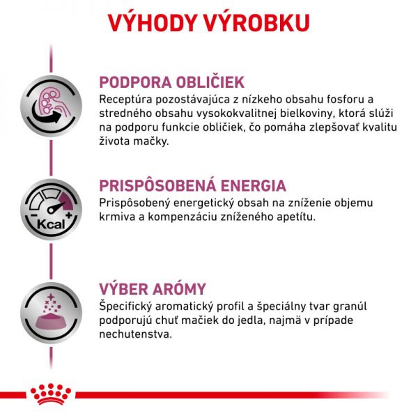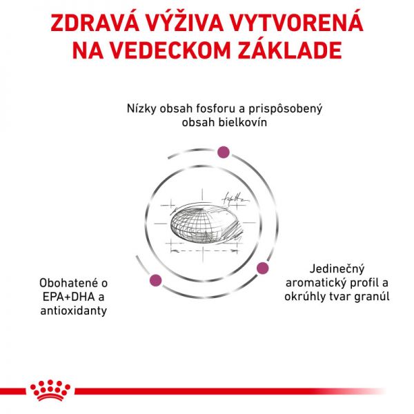 Formuła składająca się z niskiej zawartości fosforu i średnio wysokiej jakości białka w celu wsparcia funkcji nerek, co pomaga poprawić jakość życia kota.