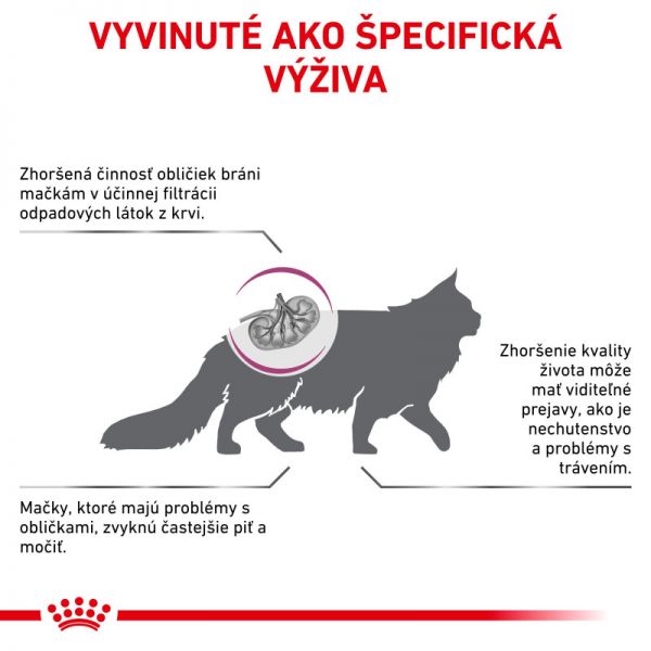 Formuła składająca się z niskiej zawartości fosforu i średnio wysokiej jakości białka w celu wsparcia funkcji nerek, co pomaga poprawić jakość życia kota.
