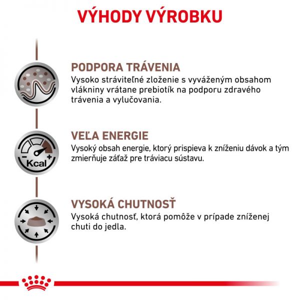 Dieta weterynaryjna odbudowująca przewód pokarmowy kotów jest odpowiednia w przypadku ostrej i przewlekłej biegunki, zapalenia żołądka, zapalenia okrężnicy, przerostu bakteryjnego jelita cienkiego lub dysoreksji. W zaburzeniach żołądkowo-jelitowych konieczne jest zmniejszenie ryzyka choroby poprzez wchłanianie składników odżywczych w jelicie i wspomaganie regeneracji ściany jelita za pomocą odpowiedniej diety.
