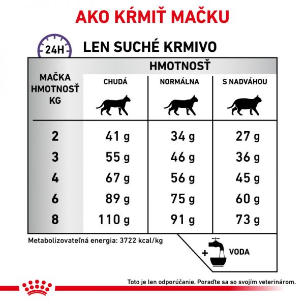Jako część gamy produktów weterynaryjnych ROYAL CANIN®, ważne jest, aby ten produkt był podawany Państwa zwierzęciu wyłącznie na zalecenie lekarza weterynarii. Przejście Państwa zwierzęcia z jednej diety na drugą powinno być płynnym i stopniowym procesem trwającym 7-10 dni. Proszę upewnić się, że podawana ilość jest prawidłowa, szczególnie w przypadku karmienia mieszanego.