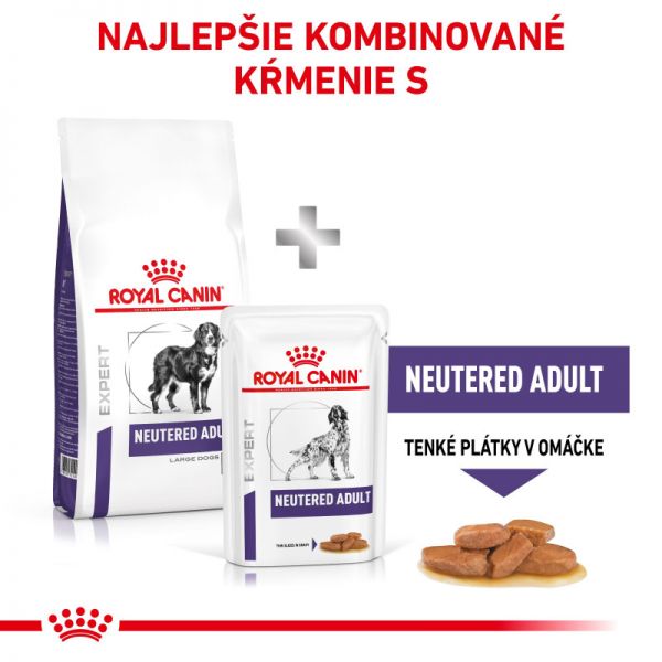 Aby dostosować się do indywidualnych preferencji każdego psa, karma ROYAL CANIN® NEUTERED Adult jest również dostępna jako karma mokra z cienkimi plasterkami w sosie*
