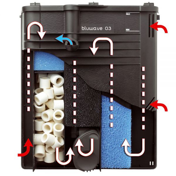 Bluwave wewnętrzny filtr akwaryjny, utrzymujący wodę w krystalowej czystości, w jednym produkcie łączy trzy rodzaje filtracji.